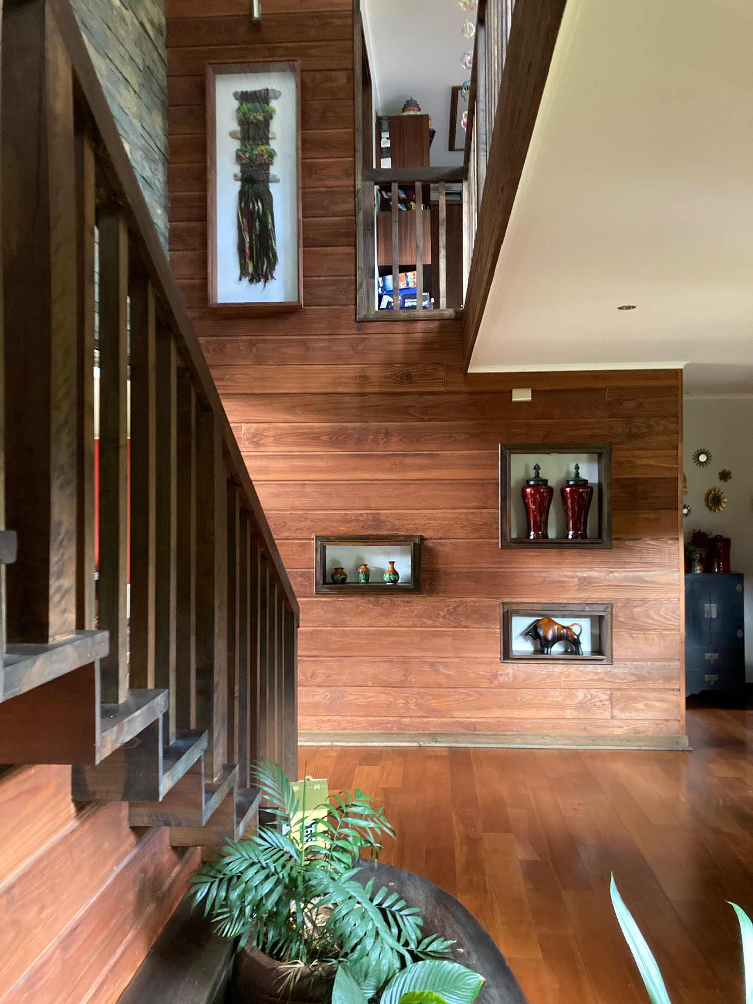 Esta vivienda unifamiliar se emplaza en la meceta de una colina orientando sus espacios principales hacia el norte para mejorar el comportamiento térmico y lumínico. Su diseño se basa en la combinación de elementos tradicionales de las casonas de madera y piedra, de zonas cordilleranas del sur de Chile, en donde las cubiertas con fuerte pendiente y grandes aleros se hacen protagonistas de la imagen general de la obra, así también sus amplios espacios interiores, los que coronan su altura con envigados de madera a la vista. El quincho de la vivienda se conecta a la misma haciéndose parte de un solo cuerpo, pero independizándose funcionalmente.